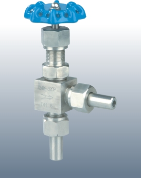 角式针型阀 型号: J24H 通径: DN3~20mm 压力: 4.0~16.0MPa 温度: -28~200℃ 材质: 碳钢、不锈钢等 设计标准: JB、GB