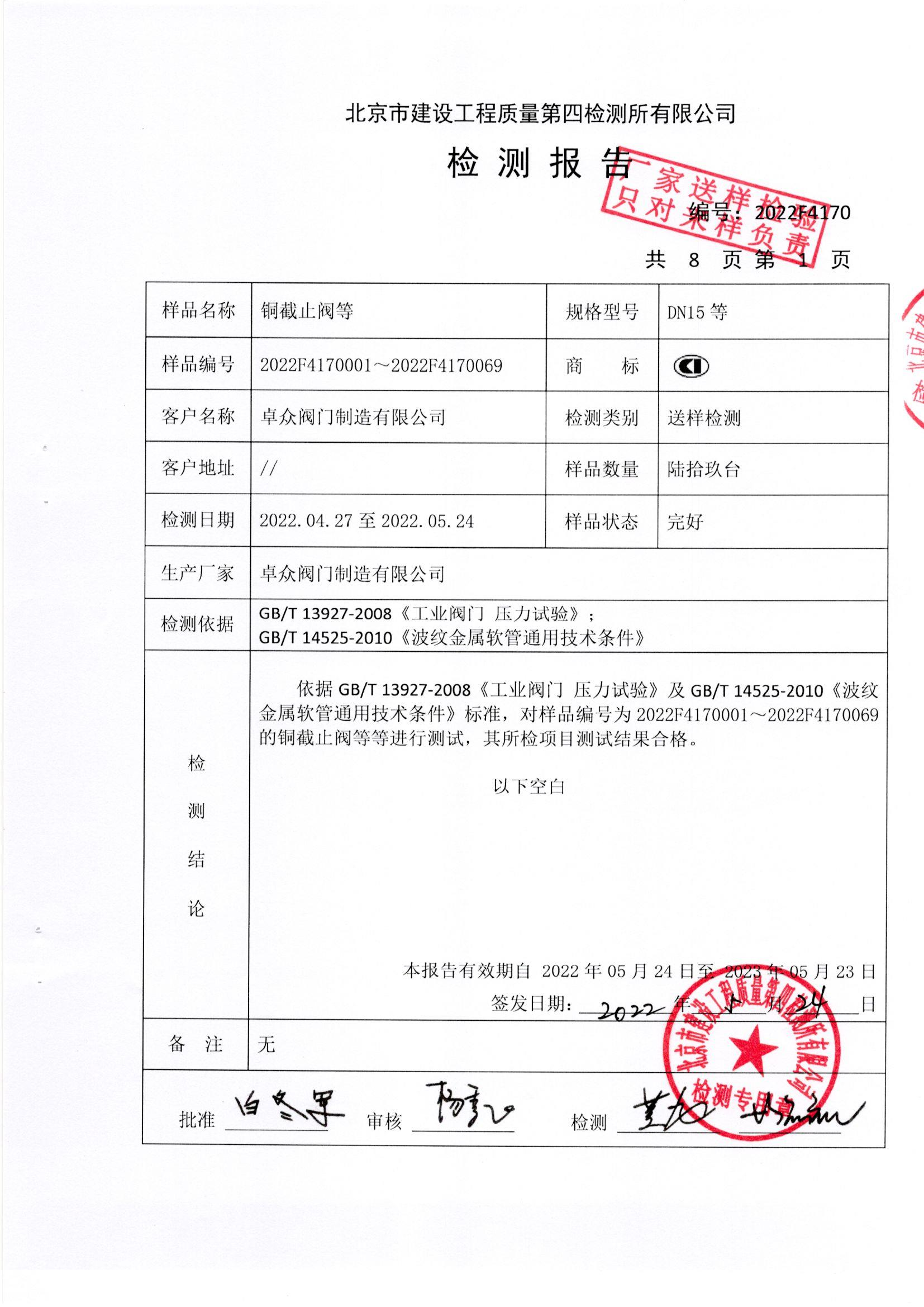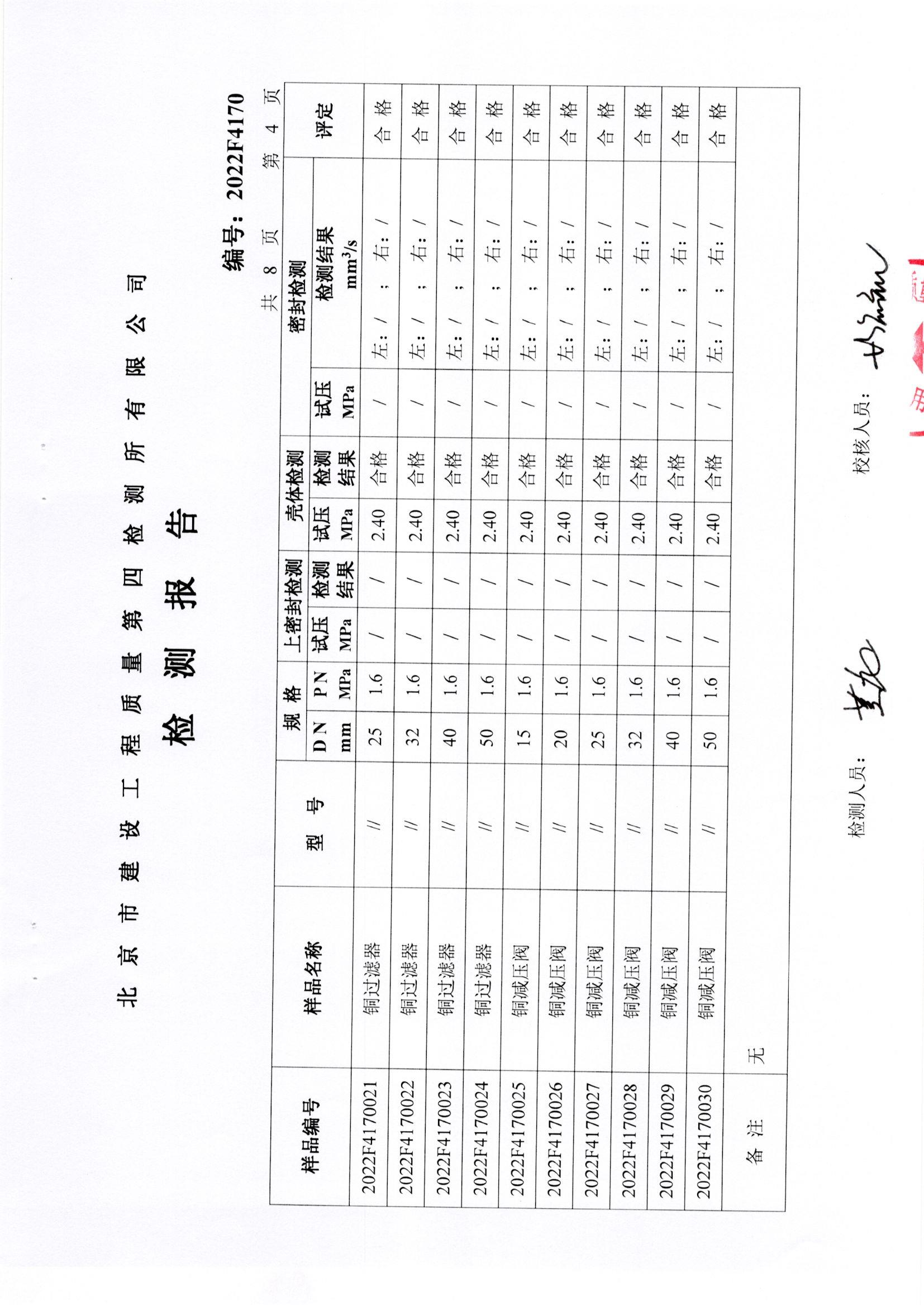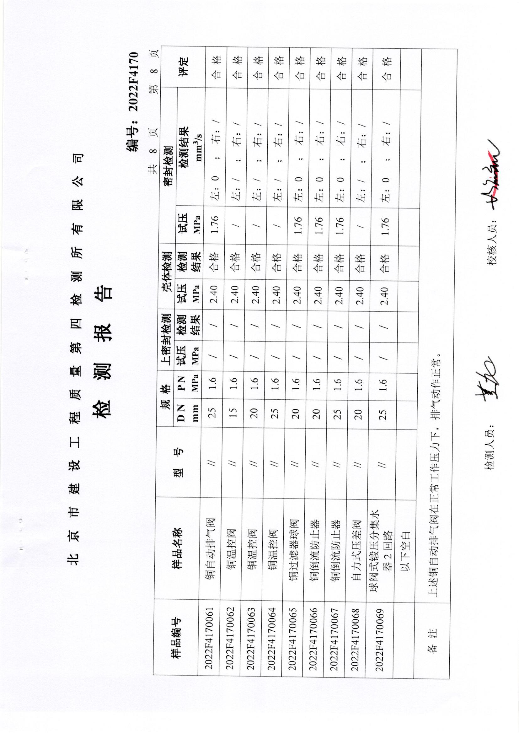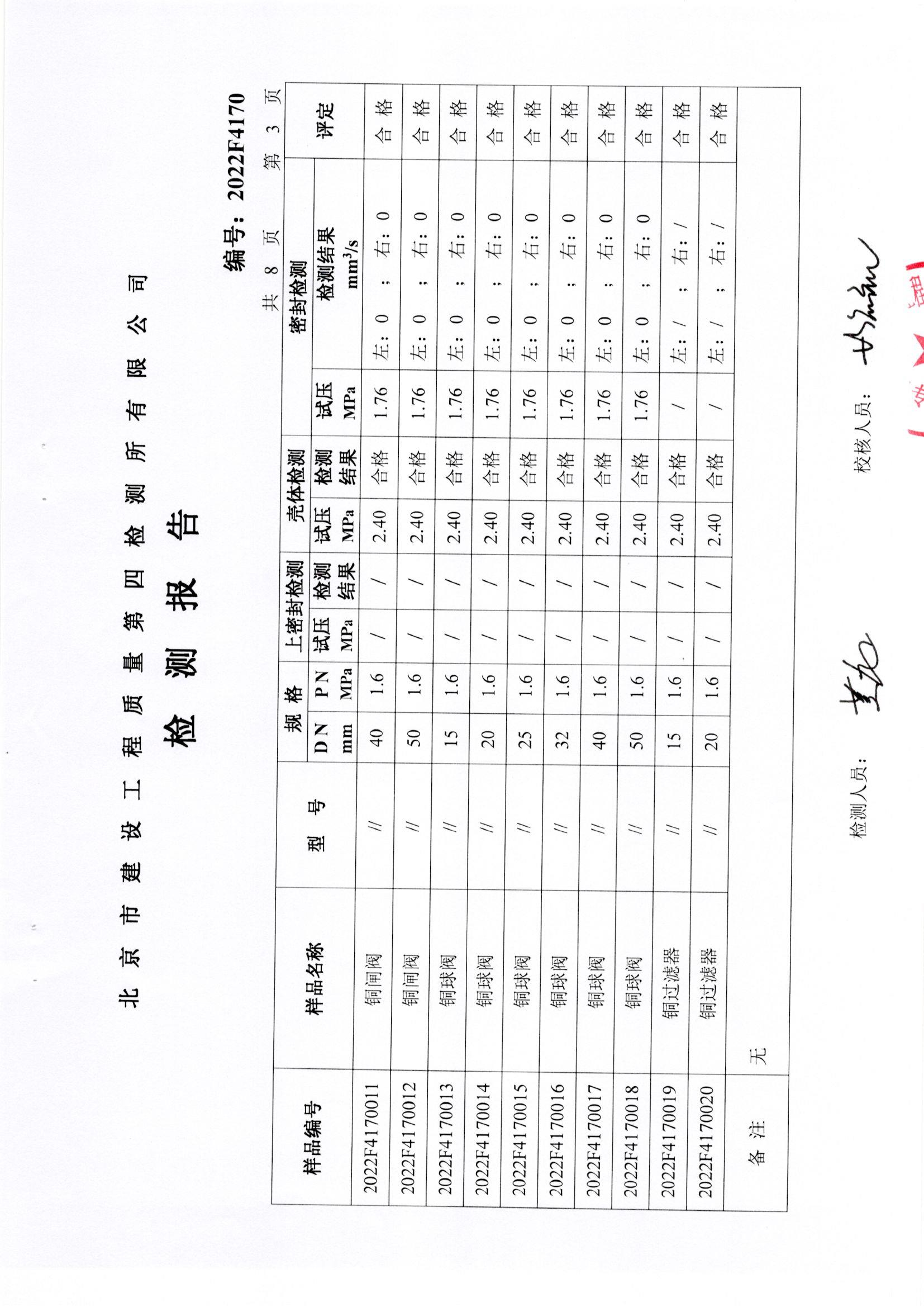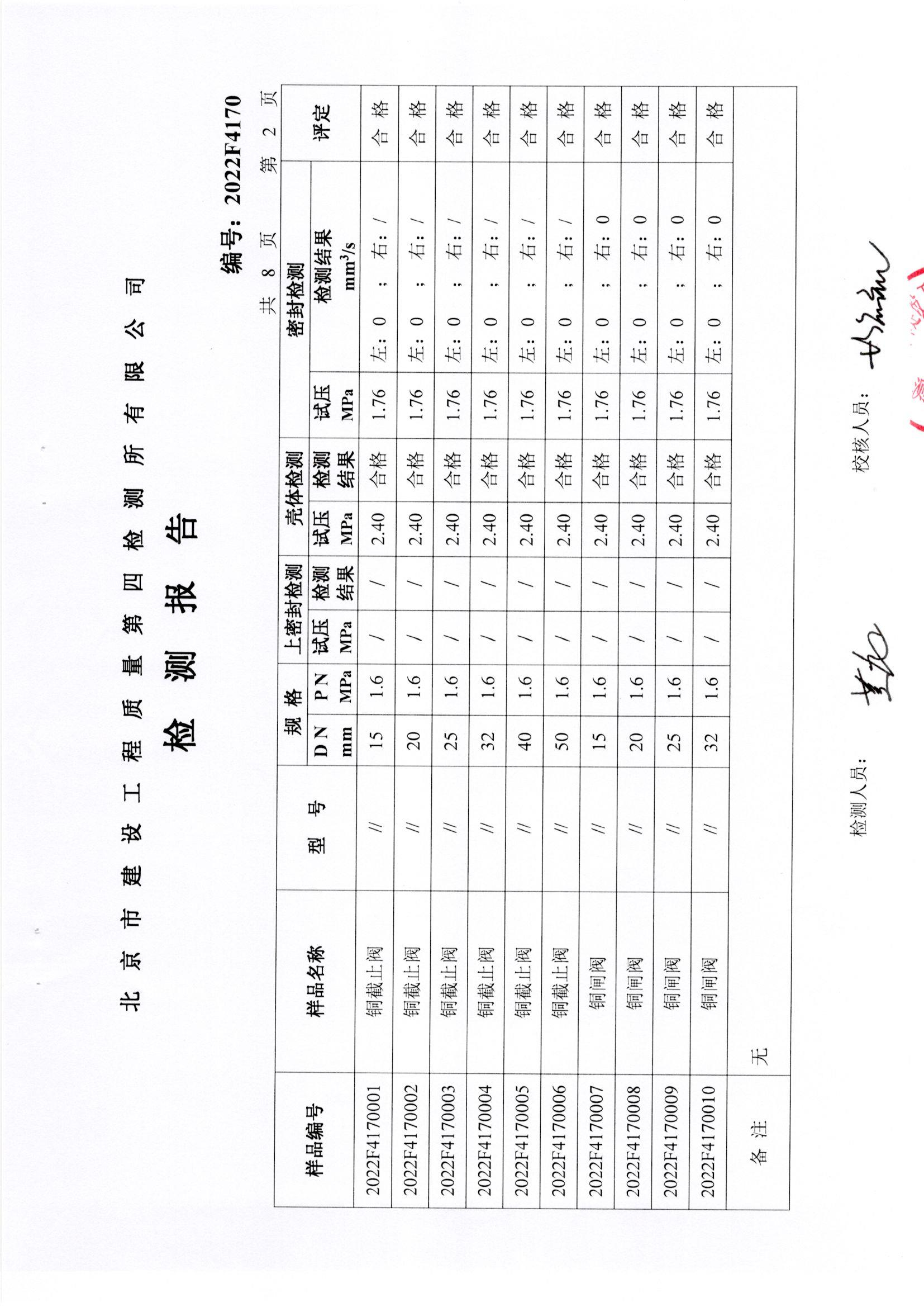 铜截止阀等检测报告